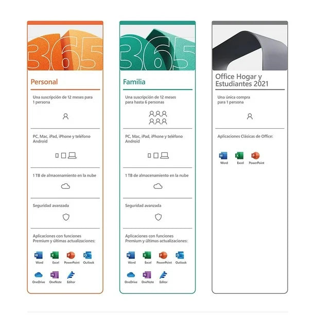 Microsoft 365 Personal incluye 1 TB de almacenamiento en la nube, características de seguridad avanzada y aplicaciones innovadoras, todo en un solo plan.
